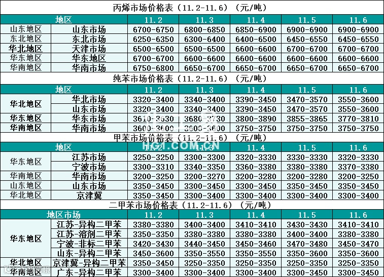 烃类报价(11.02-11.06)