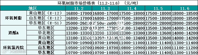 环氧树脂报价(11.02-11.06)