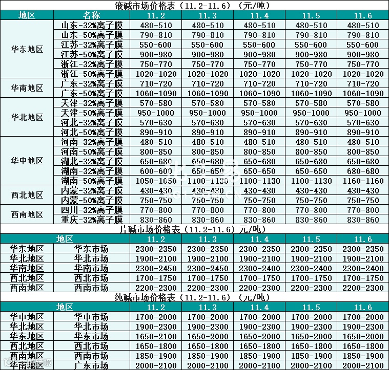 碱类报价(11.02-11.06)