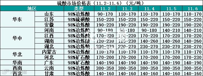 硫酸报价(11.02-11.06)