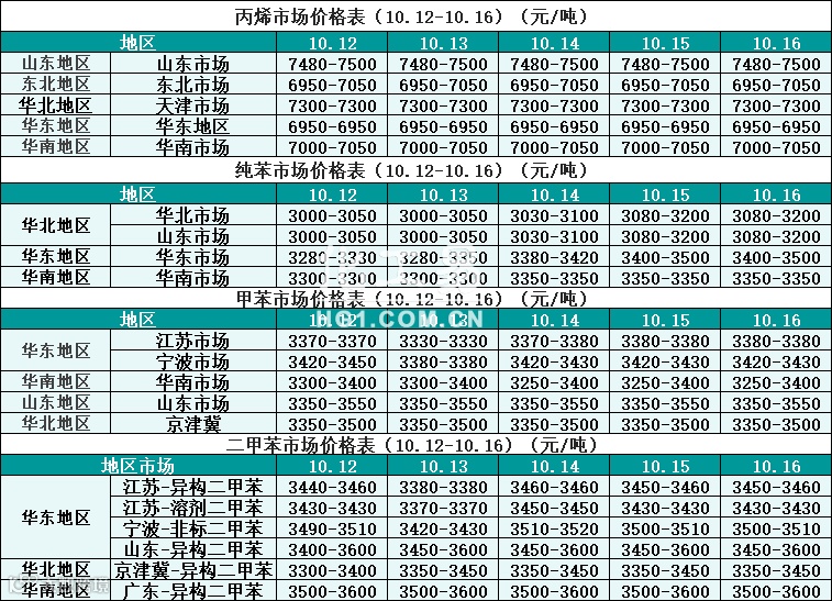 烃类报价(10.12-10.16)