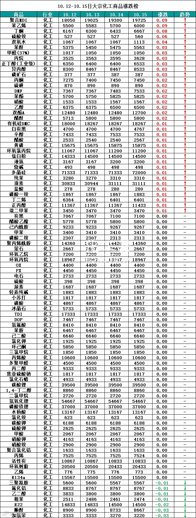 大宗商品报价(10.12-10.15)