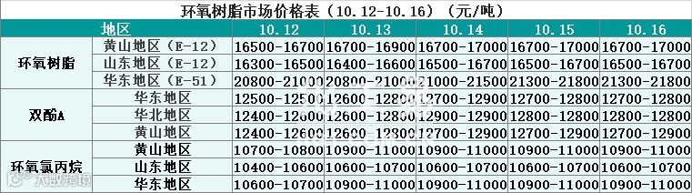 环氧树脂报价(10.12-10.16)