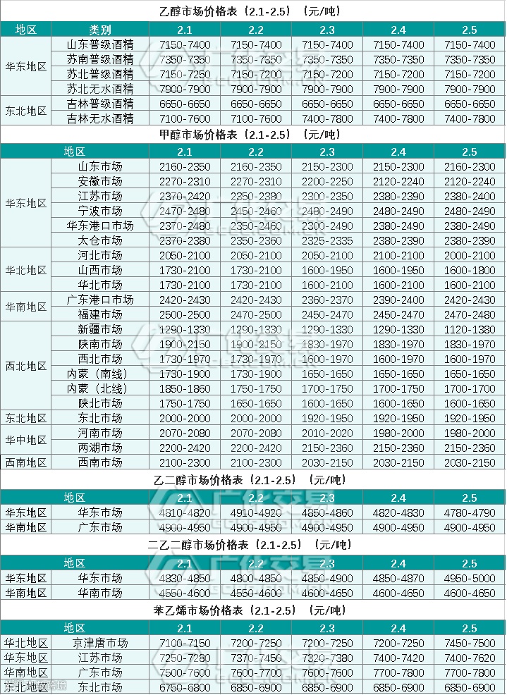 醇类报价(2.1-2.5)