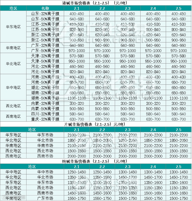碱类报价(2.1-2.5)