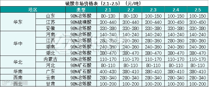 硫酸报价(2.1-2.5)