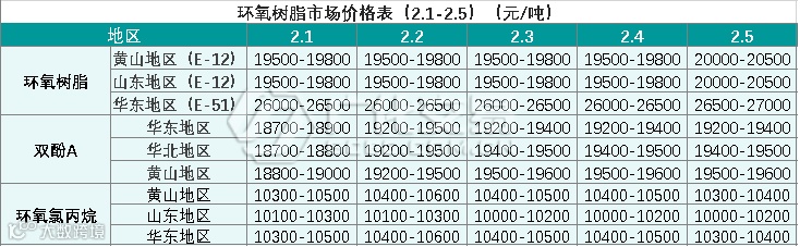 环氧树脂报价(2.1-2.5)