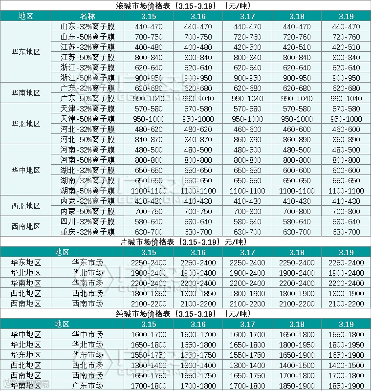 碱类报价(3.15-3.19)