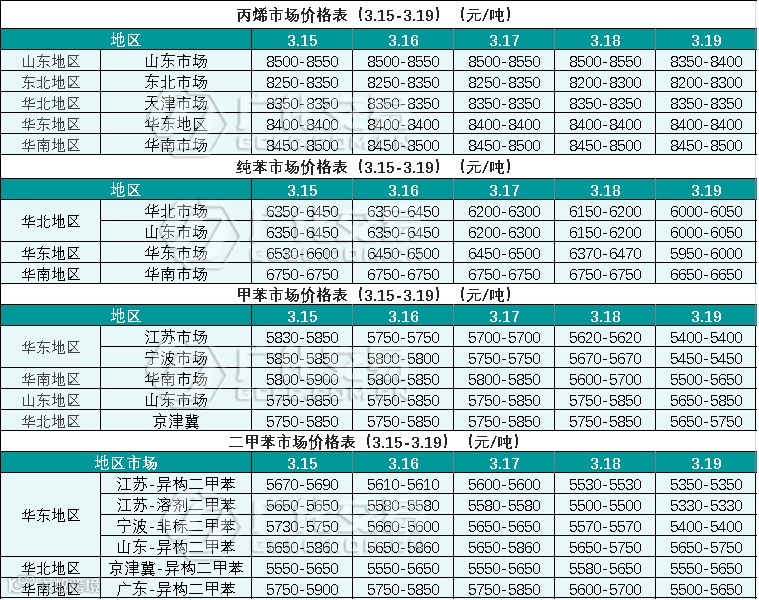 烃类报价(3.15-3.19)