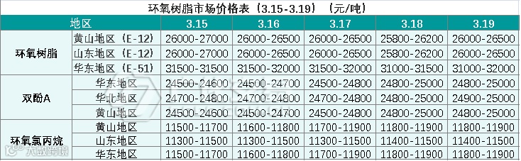 环氧树脂报价(3.15-3.19)