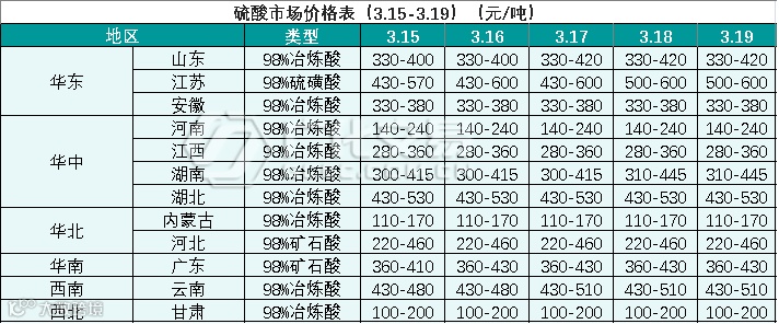 硫酸报价(3.15-3.19)