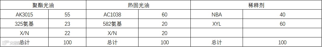 5、 相容性测试:分别在热固体系、聚酯体系添加 0.1%、0.3%、0.5%、1%、2%要测试的助剂,不同添加量分别观察加入后透明度及滴板干燥后透明度;