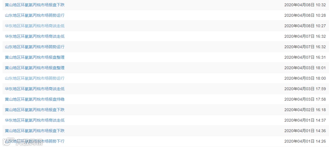4月初环氧氯丙烷市场行情延续弱势,华东、黄山市场价格参考在8200元/吨左右,山东市场主流商谈价格参考在8000元/吨左右,接近自2017年7月最低价。(详细报价情况点击→报价←查看)