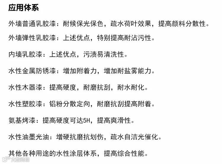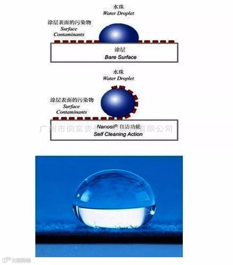 水性疏水剂是一种混合体化合物,经科学技术表面改性处理后,分散在水中形成稳定的分散体,加入涂料中能在涂料成膜表面形成一种特殊抗水结构(改变接触角)使表面具有极强的疏水、憎水、防水、提高遮味效果。同时不影响涂膜的透气性;既避免了有机硅疏水材料差的重涂性,也避免了其它疏水剂透气性差的局面。使涂料具有良好的荷叶双疏水性、自洁性、憎水性、防水性、耐污性、耐擦洗性等性能。