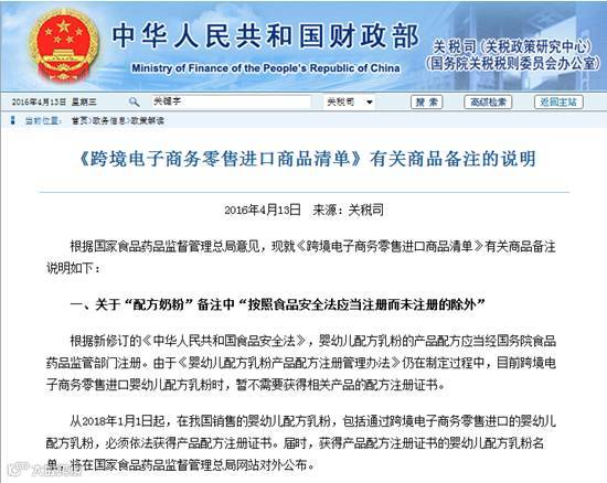 而在今年4月13日,财政部在其发布的《跨境电商零售进口商品清单》补充说明中提到,从2018年1月1日起,通过跨境电商进口的婴幼儿配方奶粉必须依法获得产品配方注册证书。那么,跨境电商进口的婴幼儿奶粉,到底需要从何时起受到监管呢?