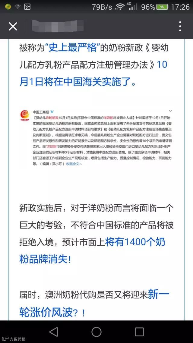 对此,小编从各方面搜索以及询问得到的消息是,2016年10月1日奶粉新政实施起,受到监管的应该是通过一般贸易进口的婴幼儿配方奶粉。而通过跨境电商进口的奶粉到底如何监管,还要等到跨境新政过渡期结束后才能知晓。