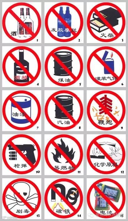 一、上图中1至15号均属航空禁运物品;