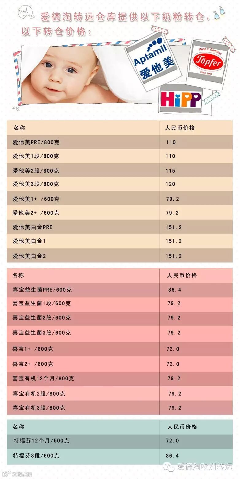 导读:由于汇率上涨。我公司奶粉转仓价格有所调整,以下是最新的奶粉转仓价格。