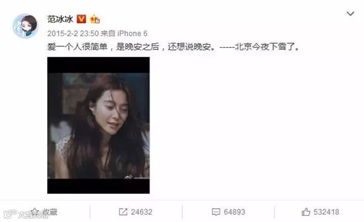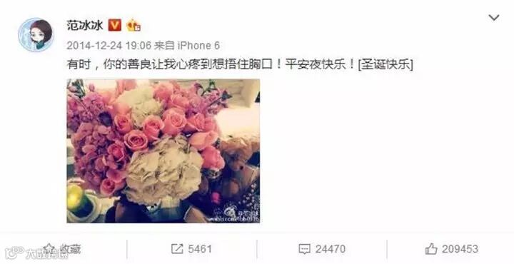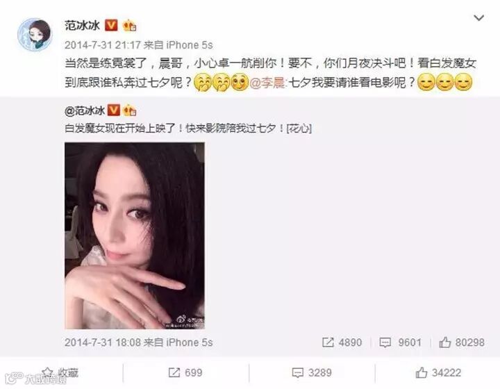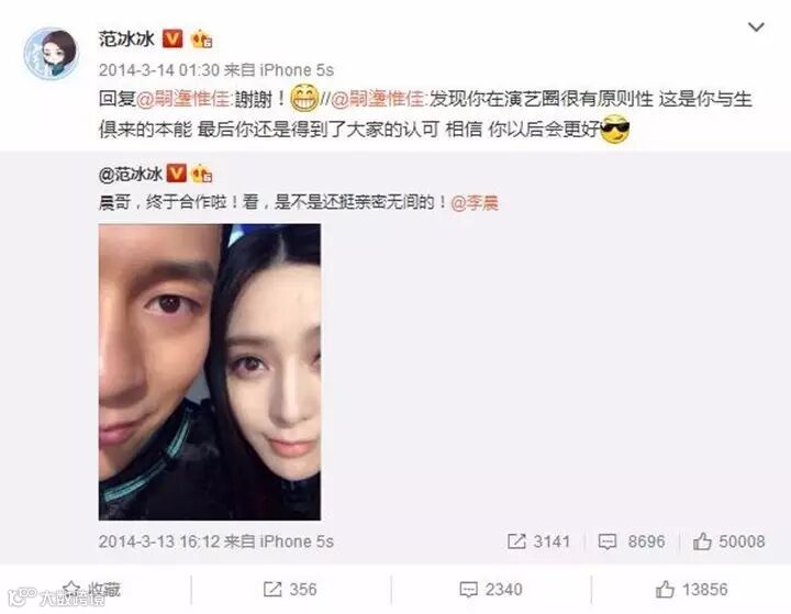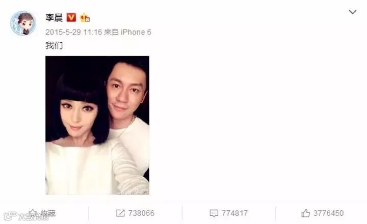 范冰冰姐在微博晒出与李晨甜蜜合影