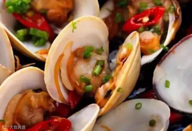 3.沸水,下花蛤,开壳及时捞出,温水冲洗一遍沥干水备用;