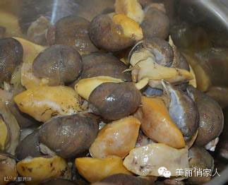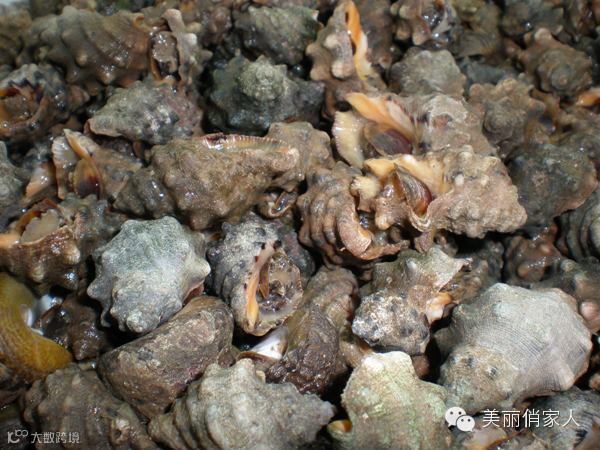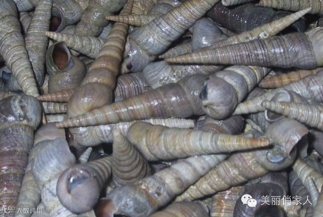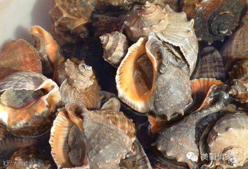 土黄色,螺层清晰,有层次感,壳薄。头部白色豆腐脑状的俗称海螺脑子,需挤出扔掉,因为吃多会让人头晕的