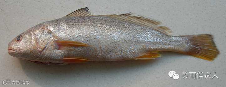 黄花鱼,头较大。背侧中央枕骨刺不明显,尾柄较细长,体黄褐色,腹面金黄色,鱼鳍黄色或灰黄色,唇桔红色,背鳍和臀鳍的鳍条基部2/3以上披小圆鳞。