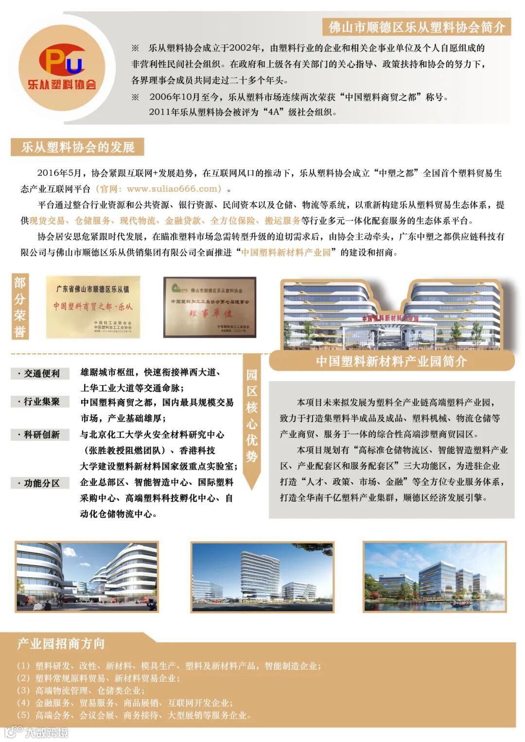 中国塑料新材料产业园囊括了塑料改性研发、塑料检测、新材料制造、产品展示、塑料交易、仓储物流、金融服务等核心功能,势必将成为一个国际化、多元化的塑料全产业链园区。