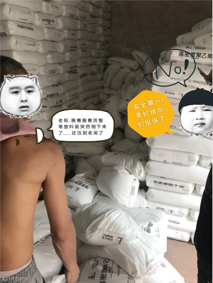 装卸员每天围绕塑料堆打转工作,扭伤、刮伤、撞伤……“意外”是无法预估的。意外难以鉴定,理赔没有依据成了压垮商家的最后一根稻草。虽然没法从根本上降低意外出现的概率,但出于对生命的敬畏,购买一份乐从塑料协会&中塑之都搬运工工伤保险,为商家和搬运从业者一同保驾护航。