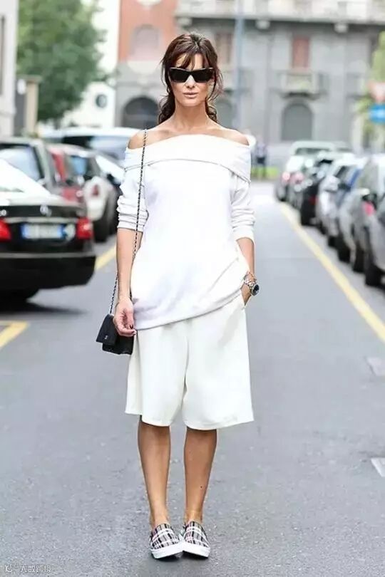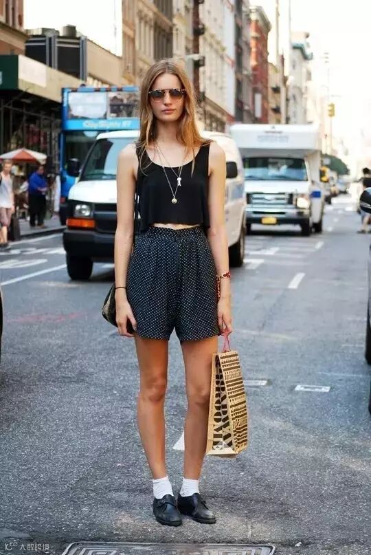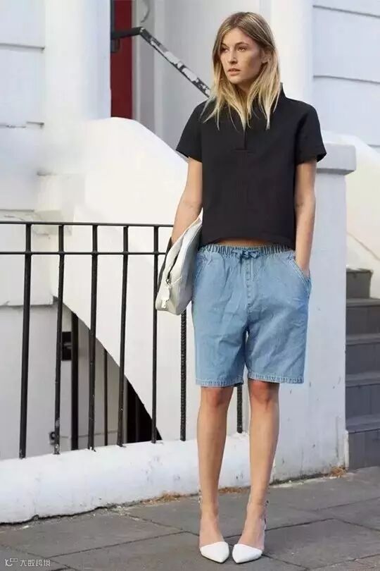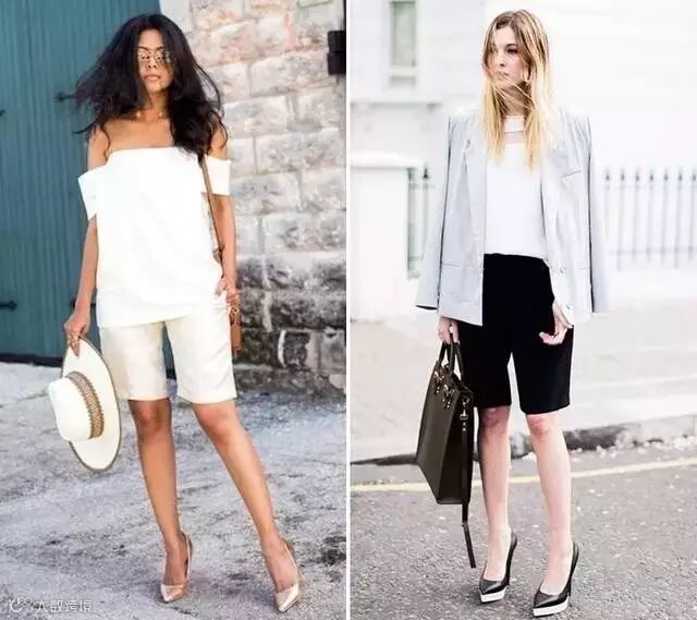 长一点的及膝短裤,很容易就将腿部线条截成两半,或是整个人被短裤给拖垮而没精神,但利用一些搭配的小技巧就可以避免这个问题,如搭配高跟鞋和短版收腰上衣,让整体比例拉长。