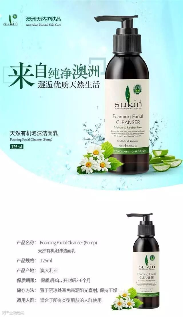 Sukin此款洗面奶是低泡产品,没有添加任何化学发泡剂,富含植物成分,能够在洁净肌肤的同时为肌肤补水,而且没有任何残留。配方温和,不会令肌肤干燥,能有效去除彩妆、面上的污垢及油垢。能令肌肤充满活力,同时净化和平衡皮肤。适合所有皮肤类型,尤其是油性和敏感。