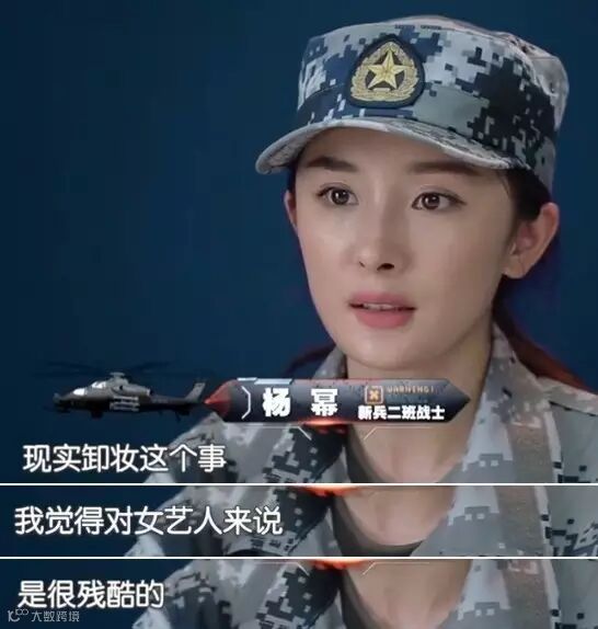 杨幂在《真正男子汉》上抱怨卸妆对女星来说太残酷了。▼