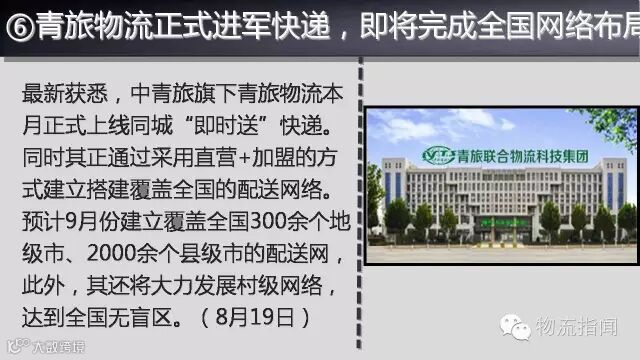 ➏青旅物流正式进军快递,即将完成全国网络布局