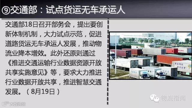 ➒交通部:试点货运无车承运人,推进交通网络安全和数据共享