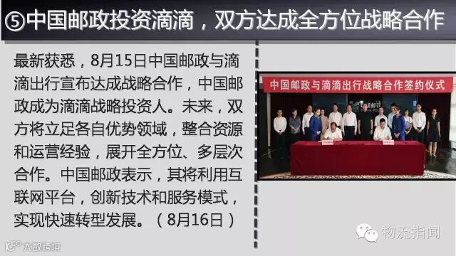 ➎中国邮政战略投资滴滴,双方达成多层次战略合作