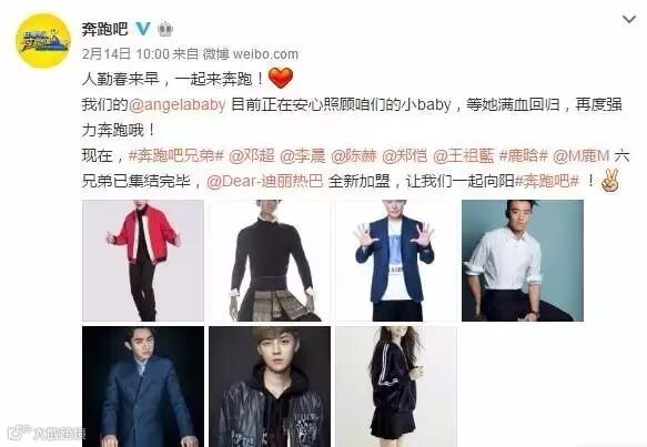 情人节当天,炒的沸沸扬扬的《奔跑吧》baby临时替补队员总算是确定下来了。《奔跑吧》栏目组发布了微博正式欢迎我们的胖迪——迪丽热巴加入。