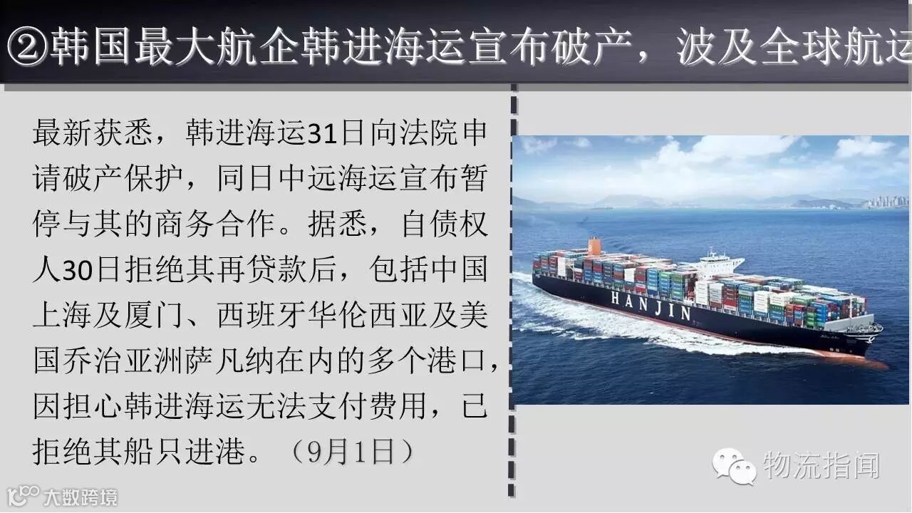 ➋韩国最大航企韩进海运宣布破产,波及全球航运业