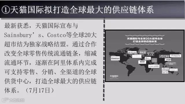 ➊天猫国际与全球20大超市联盟,拟打造全球最大的供应链体系