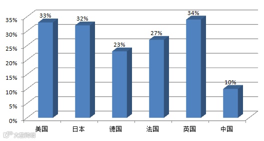 各国第三方物流所占市场份额:%
