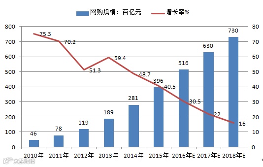 2010-2018年中国网络购物年度规模统计及预测