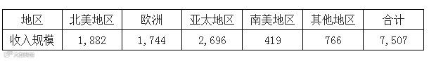 2014 年全球第三方物流收入规模 单位:亿美元