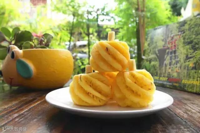 泰国小菠萝也叫“布兰”,只有清迈、清莱、普吉三地才有。小菠萝个头只有拳头大小,是世界上最小的菠萝。