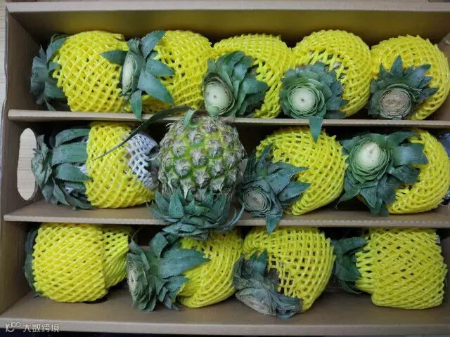 我们的小菠萝,都是在泰国果园里采摘后直接送往客户家里,十分新鲜,因此小菠萝看起来是绿的,甚至有点发黑。