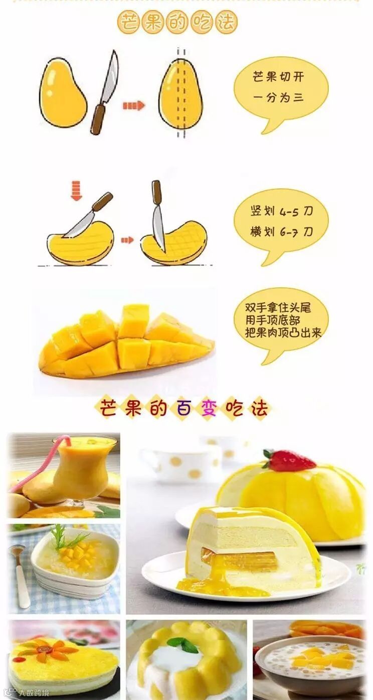成熟的芒果,直接剥皮就可以吃。下面给大家介绍下芒果的切法与吃法,吃货们好好学学哦!