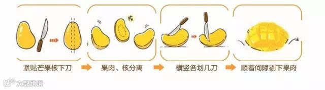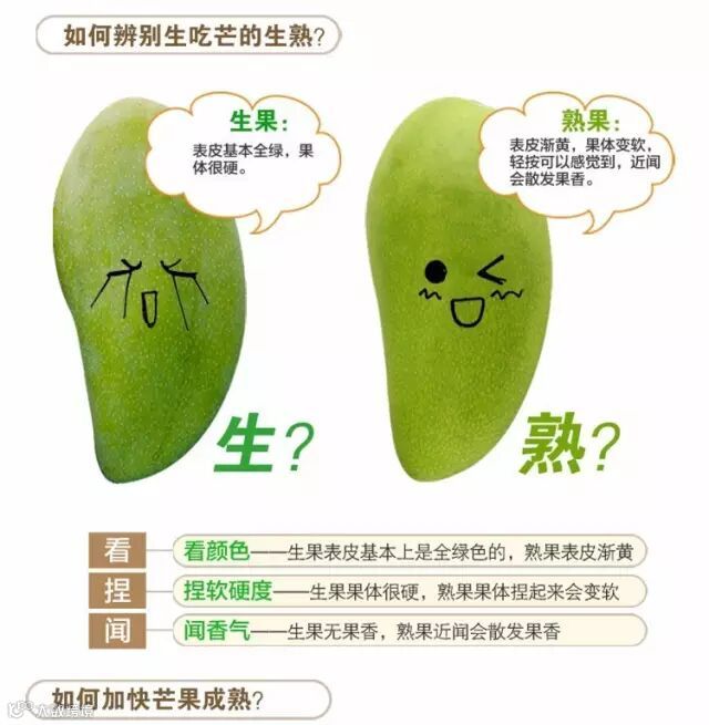 当然,如果不习惯吃生的芒果,你也可以把芒果放几天,等它变软变熟后再吃。熟透的生吃芒皮薄肉厚,果肉金黄,美味多汁,甜味不腻,入口即化,拥有跟生吃截然不同的口感。