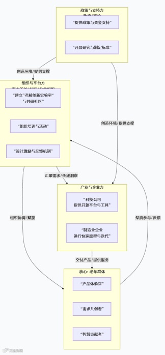 为了更直观地展示这一创新网络,下图描绘了以老年人为核心,各方力量如何协同参与的生态系统: