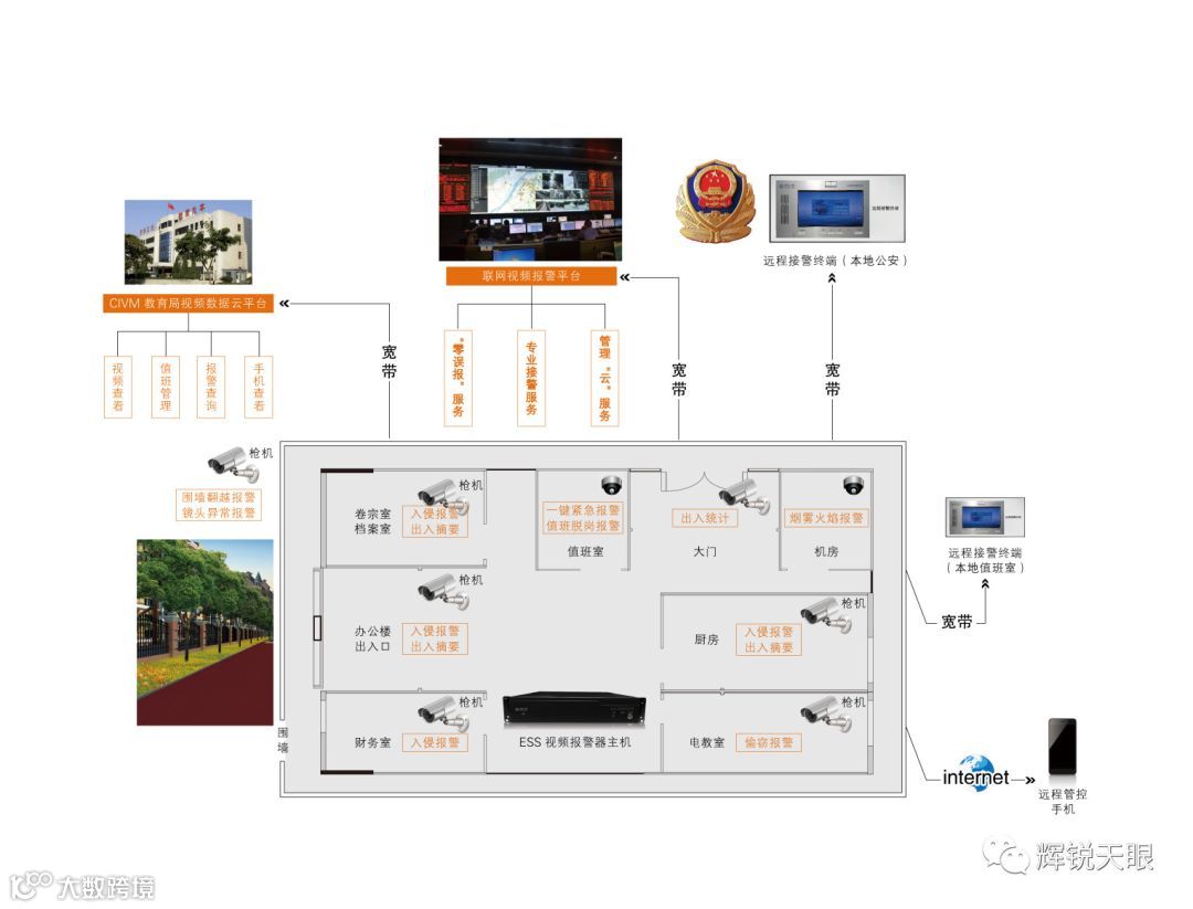 辉锐天眼 ESS 视频报警器VE系列是专门为学校开发的一款集视频查看、“零误报”视频报警、远程联动控制和手机管理应用于一体的企业级视频报警产品,产品提供提供2 路到32 路视频分析报警和报警现场管理,具有报警服务、管理服务、数据服务和增值服务四大功能。