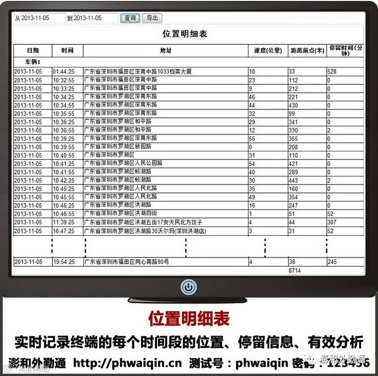 位置明细:记录手机或车辆等终端机在具体时间的位置、地址、停留情况等信息数据。