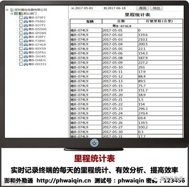 远程考勤:记录手机、车辆等终端机开启和关闭数据,了解终端机的工作状态。