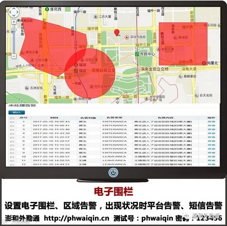 电子围栏:可以设定各种形状的电子围栏,可以设置手机、车辆等终端机多种围栏告警形式。