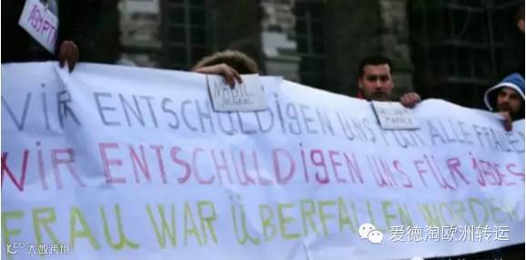 (一些摩洛哥和阿尔及利亚的移民打出横幅标语,为中东和北非穆斯林男子犯罪道歉)
